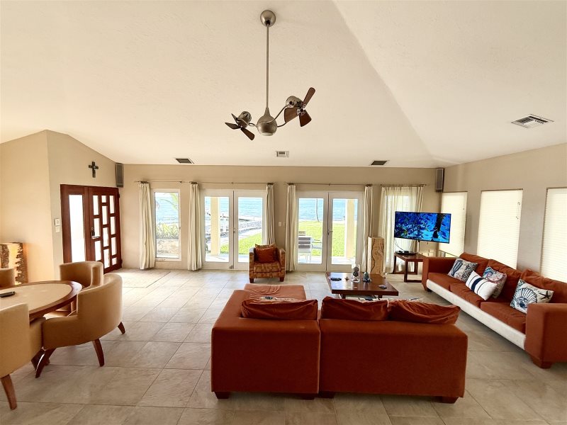 Alegria is an elegant seaside villa with state of the art modern amenities and glorious ocean vistas will delight your heart with island fantasies come true. This 3 bedroom, 3-1/2 bath home is ideal for entertaining friends and family who appreciate the finer things in life, like rich wood furnishings, brushed stainless steel, and elegant lighting. Gently swing open the patio doors and sink your feet in the sand! Alegría is a unique blend of luxury and the simplicity of Caribbean living.